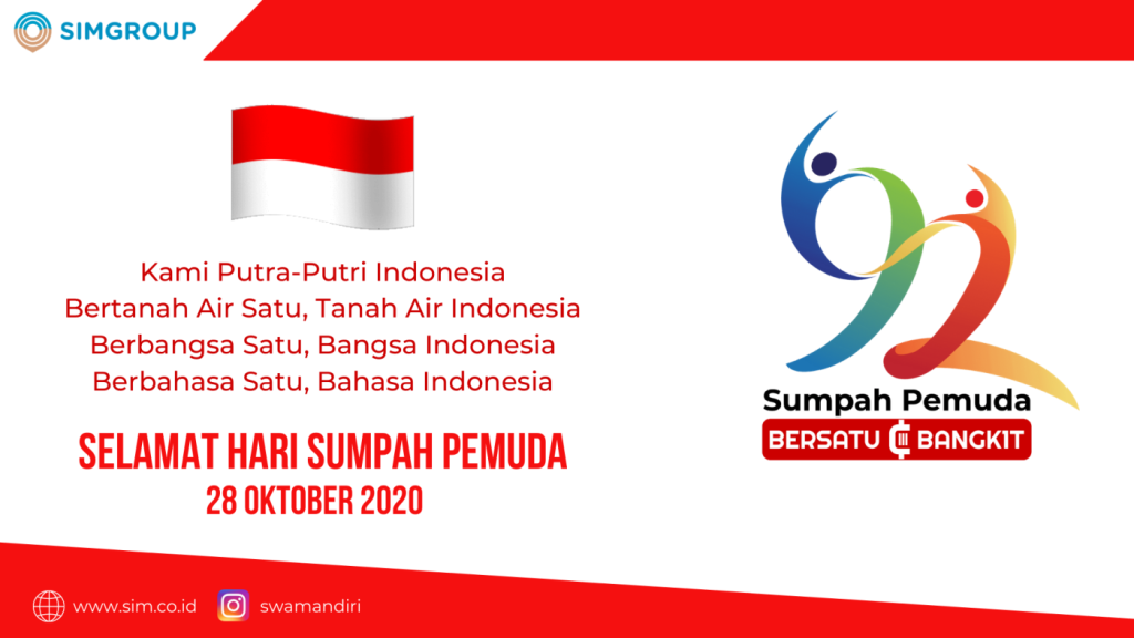 t Hari Sumpah Pemuda Kami putra-putri Indonesia Bertanah Air Satu, Tanah Air Indonesia Berbangsa Satu, Bangsa Indonesia Berbahasa Satu, Bahasa Indonesia Mari Bersatu dan Bangkit Pemuda Indonesia Menuju Indonesia Maju