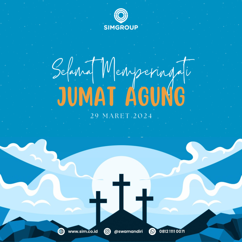 Manajemen SIMGROUP mengucapkan: Selamat Memperingati Jumat Agung 2024 Semoga di hari Jumat Agung ini membawa kedamaian, pengharapan, dan berkat bagi kita semua.